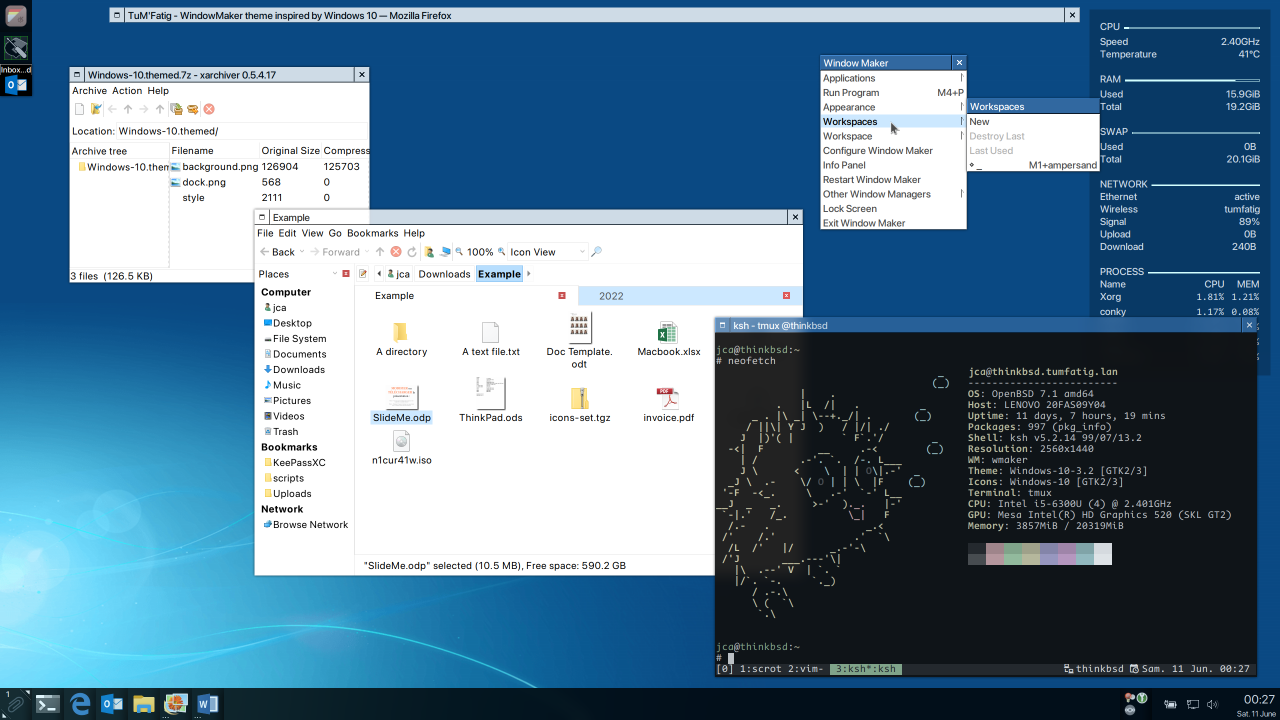 Window Maker on OpenBSD captured and uploaded by jcarnat about 3 years ago | Download Notes: WindowMaker customized to look like Windows 10 caja, conky, xarchiver